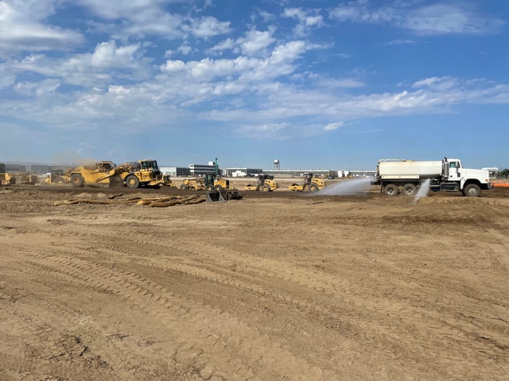 Coordination with an adjacent fertilization plant, Simplot, required collaborative planning to accommodate existing monitor wells on the project site that are in place to monitor ground water quality and assess quality parameters in relation to their manufacturing operation. Proactive measures were taken to protect these areas by building berms and placing high visibility perimeters around the exposed bollard markers. In addition, our Project team worked closely with Clayco’s Safety team to ensure COVID precautions and dust control measures were in place.