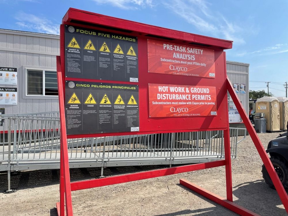 Coordination with an adjacent fertilization plant, Simplot, required collaborative planning to accommodate existing monitor wells on the project site that are in place to monitor ground water quality and assess quality parameters in relation to their manufacturing operation. Proactive measures were taken to protect these areas by building berms and placing high visibility perimeters around the exposed bollard markers. In addition, our Project team worked closely with Clayco’s Safety team to ensure COVID precautions and dust control measures were in place.