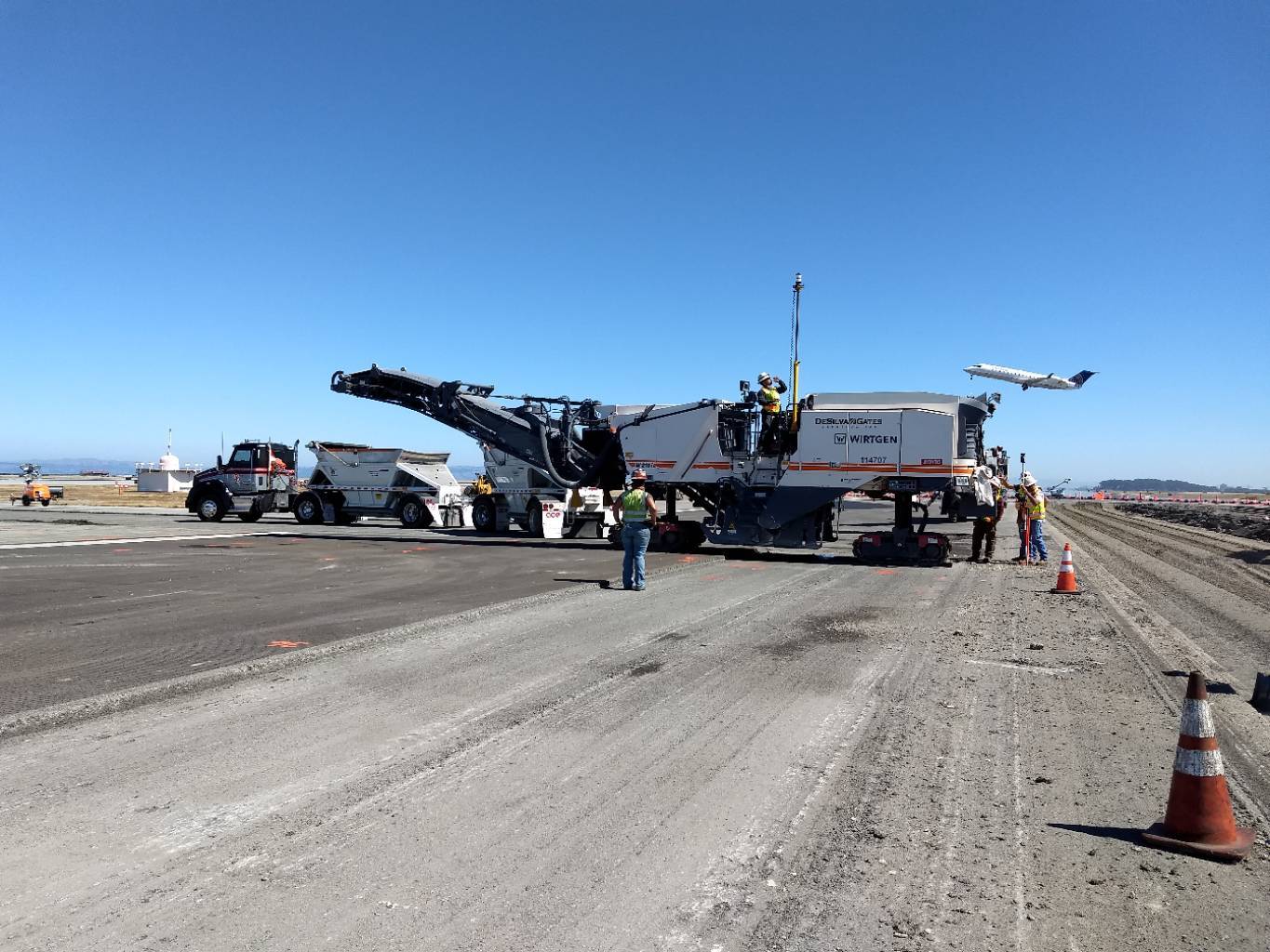 In order to improve long-term durability and performance of Runway 28L, this project at the San Francisco International Airport (SFO) included the reconstruction of the runway between Taxiways Echo and Lima, crossing Runways 1L and 1R. DeSilva Gates Construction demolished the existing pavement structure down to subgrade and reconstructed the middle section of the runway from the ground up. In addition to the reconstruction of the runway itself, all lighting infrastructure that was impacted by the reconstruction area was replaced, two deteriorated storm drain lines that crossed under this section of the runway were replaced, and the new runway pavement was grooved and striped. This project also provided an overlay of Runway 1L, extending 300 feet from each side of the Runway 28L centerline.