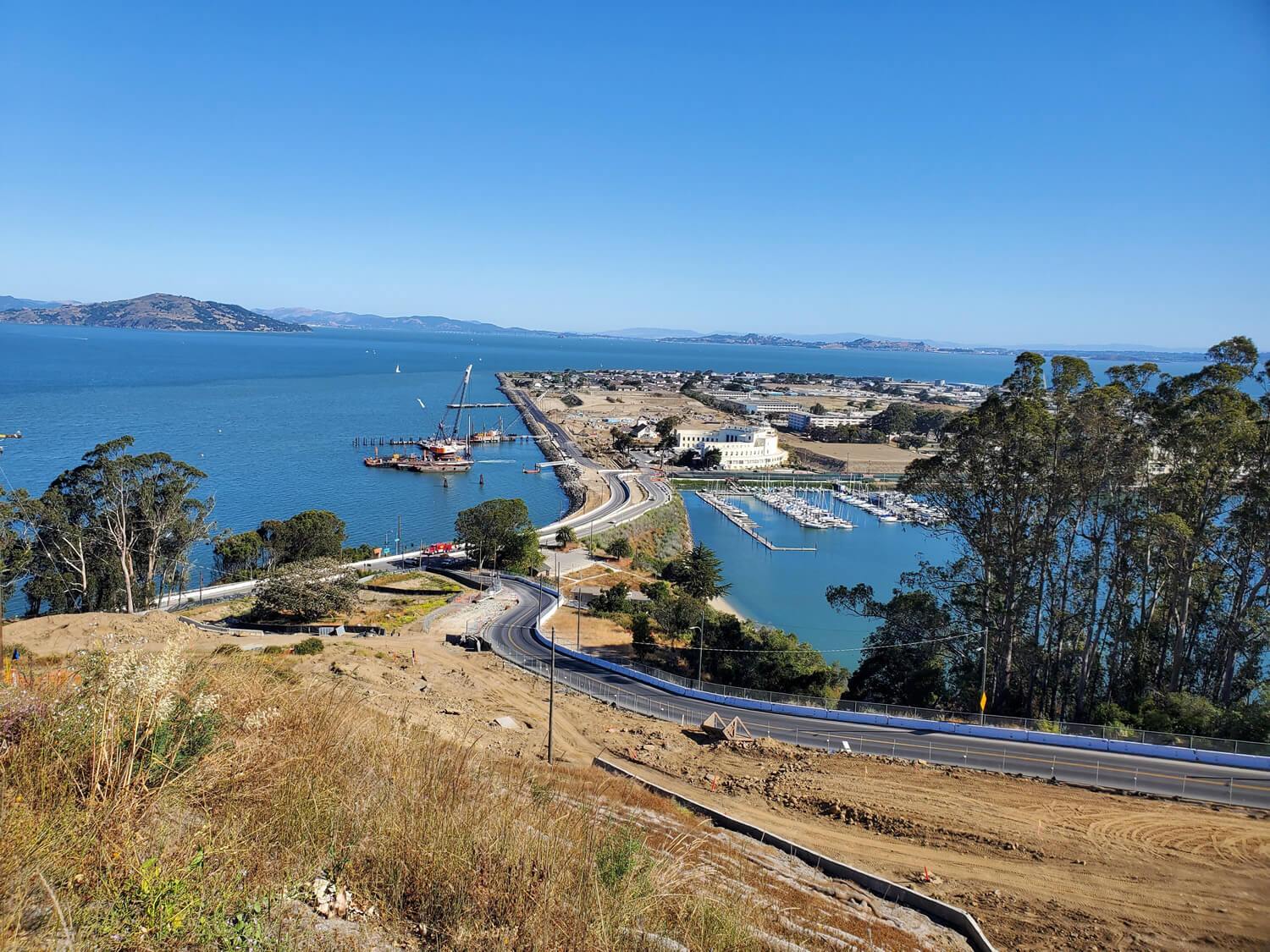 Navigating the project’s intricacies has been a formidable challenge, primarily due to the high density of construction in a tight urban space, surrounded by water. The project team faced numerous logistical complexities, as virtually everything needed for the project must be brought to the islands. Tidal fluctuations (dewatering), frequent traffic pattern changes, narrow roadways, maintaining safe, public access for pedestrians and cyclists, steep slopes, varying soil conditions from hard rock to soft bay mud, a diverse group of local residents, businesses and organizations, a challenging oversight agency (City and County of SF) and other factors added a layer of unpredictability to the project as well.
